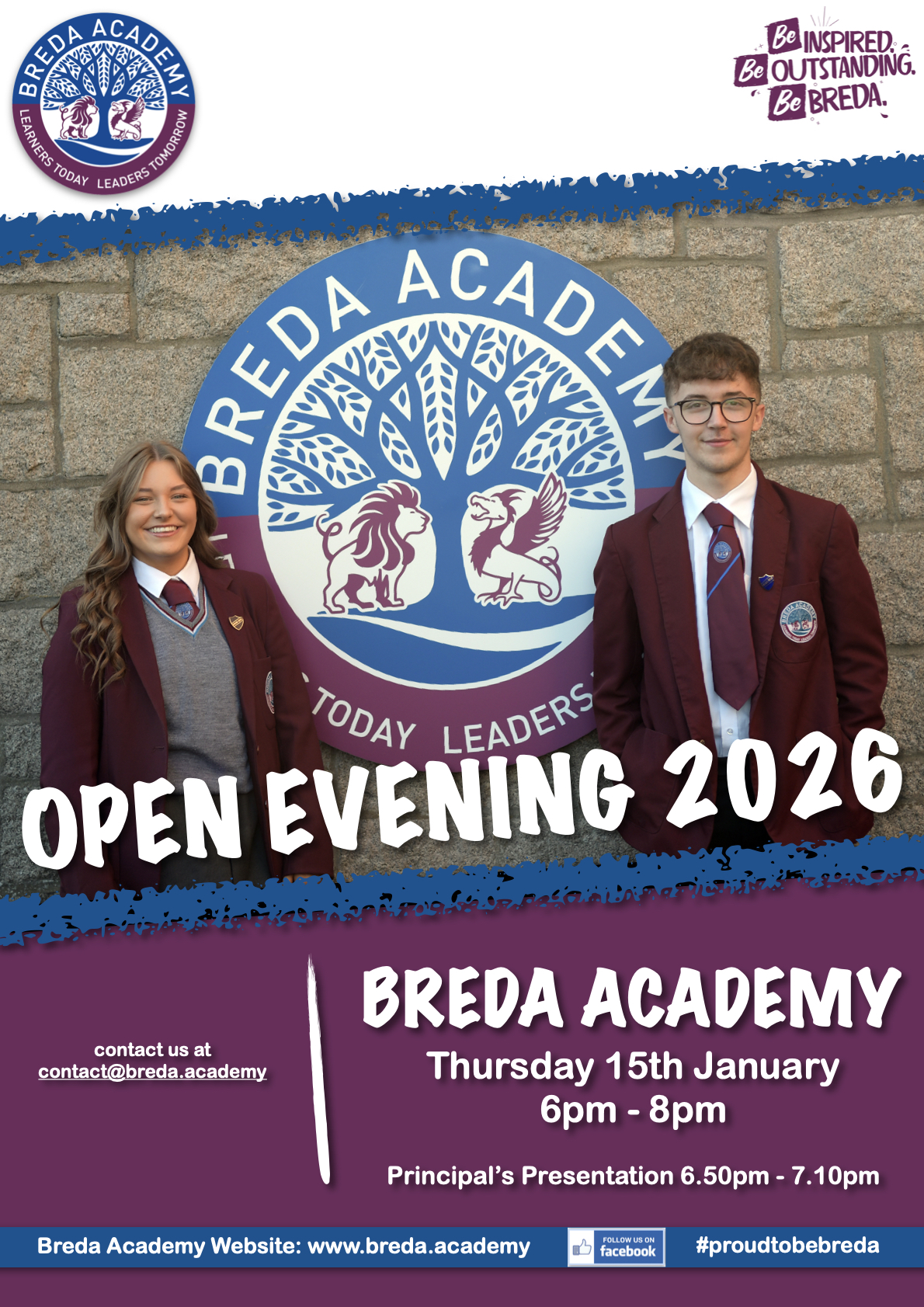 It is our ambition at Breda Academy that students are ‘Learners Today and Leaders Tomorrow’ and when they leave us, they will go on to be future change makers and take an active role in shaping and making Northern Ireland and the world a better place for us all. To quote John F Kennedy the 35th President of America; “Children are the world’s most valuable resource and its best hope for the future.”